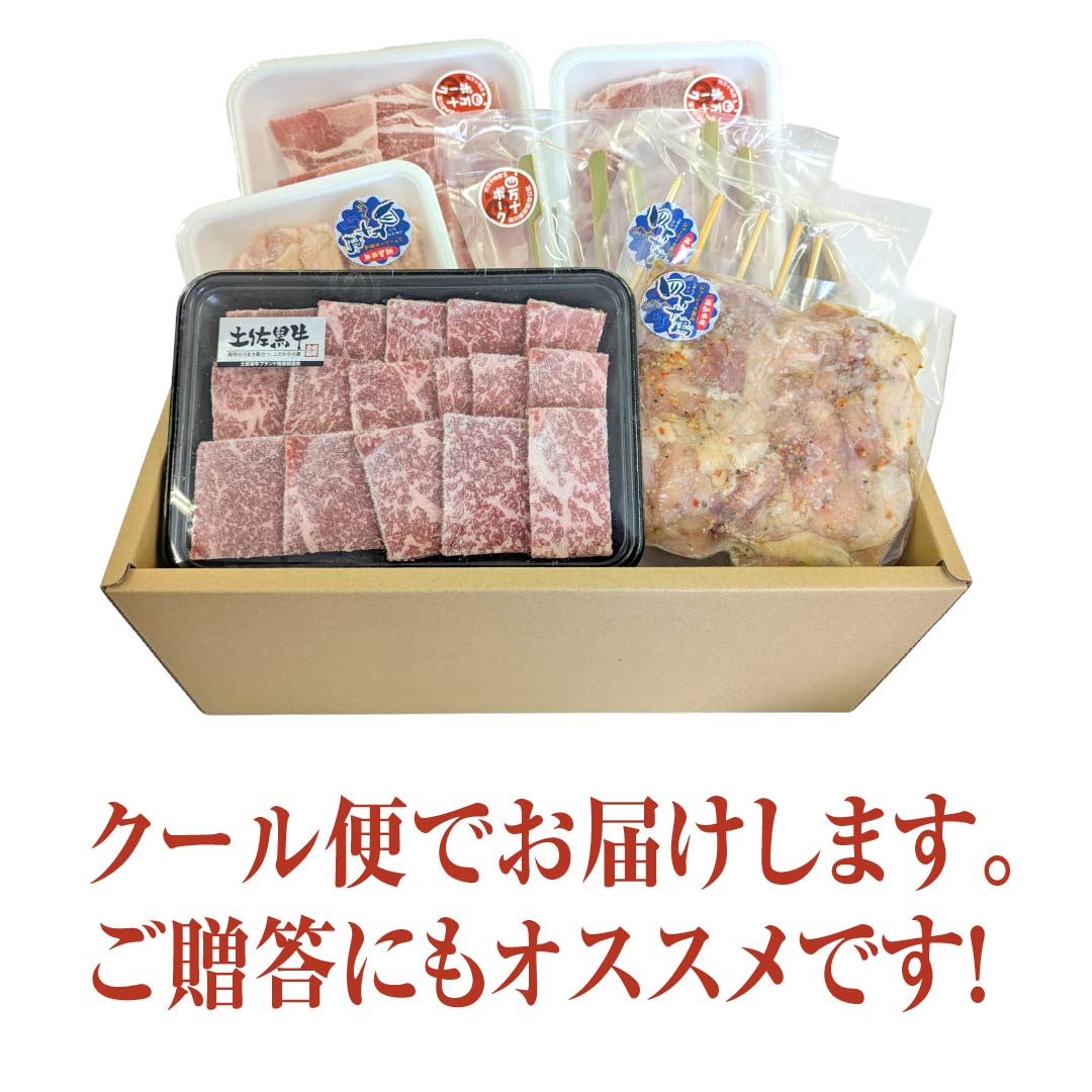 代表的な「土佐和牛」「四万十ポーク」「四万十鶏」をセットにしたバーベキューにピッタリのお肉セットです。